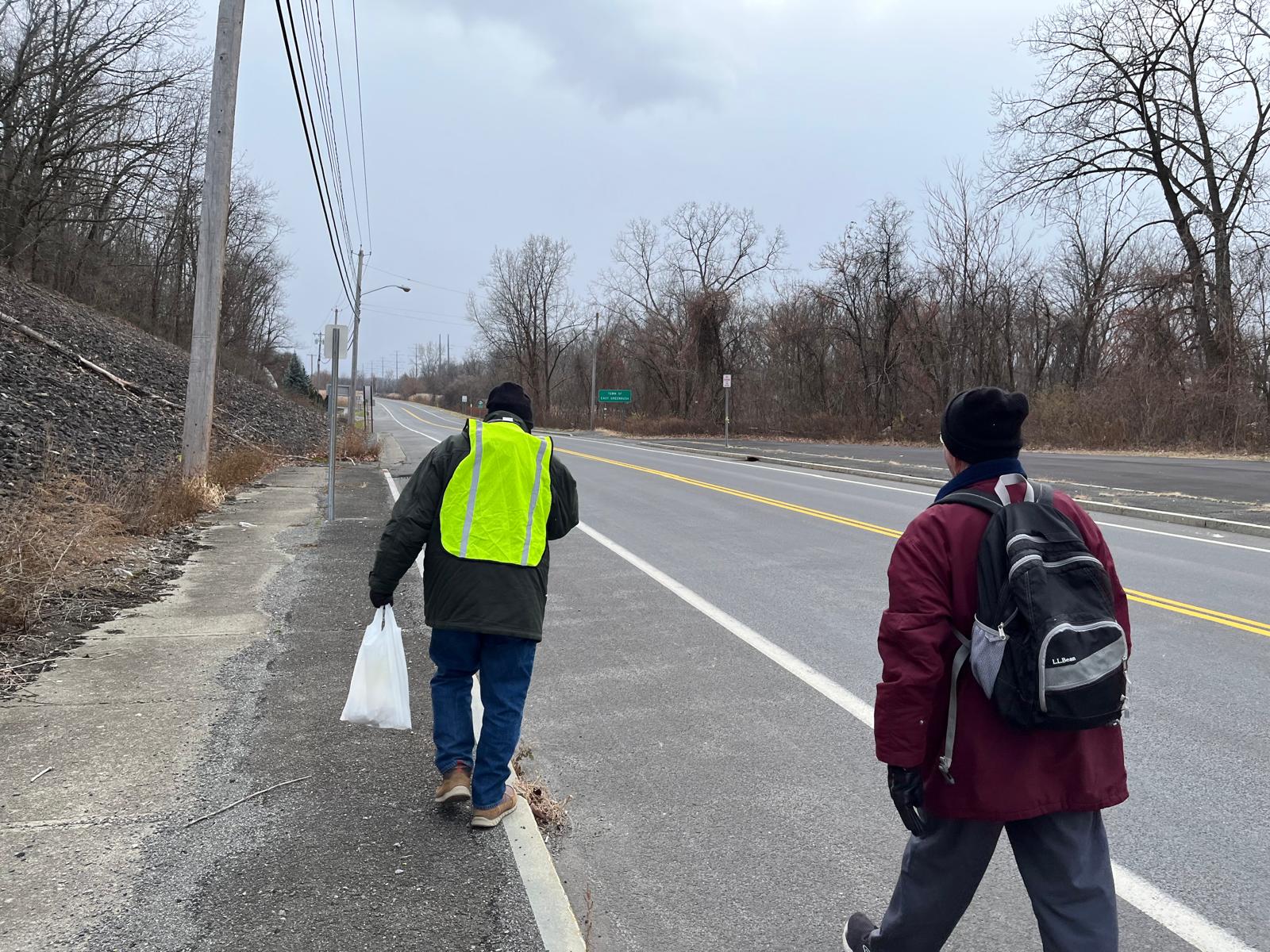 Knox Walkers traveled by foot, a mobile unit carrying bags and backpacks.