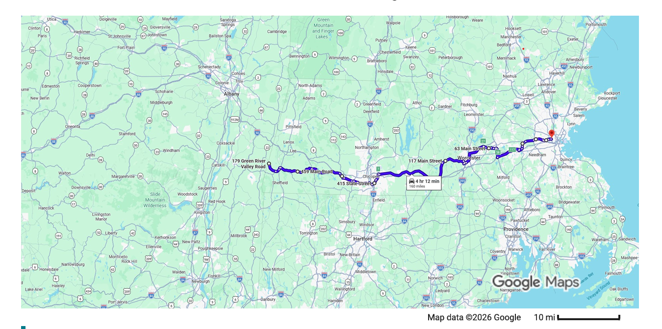 | NY Segment: Crown Point NY to Alford at Mass. state line | 161 | Henry Knox: about 16 Knox Walkers: 11.5 |